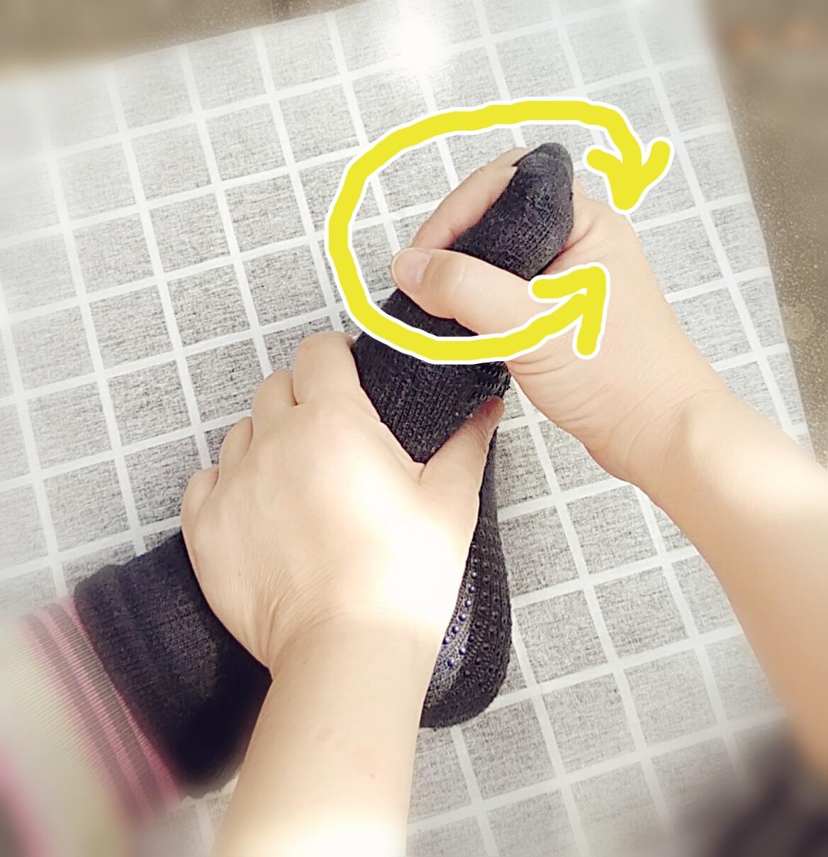 ●写真では左手で回してますが、左足は右手の方がやりやすいです…ゴメンナサイ