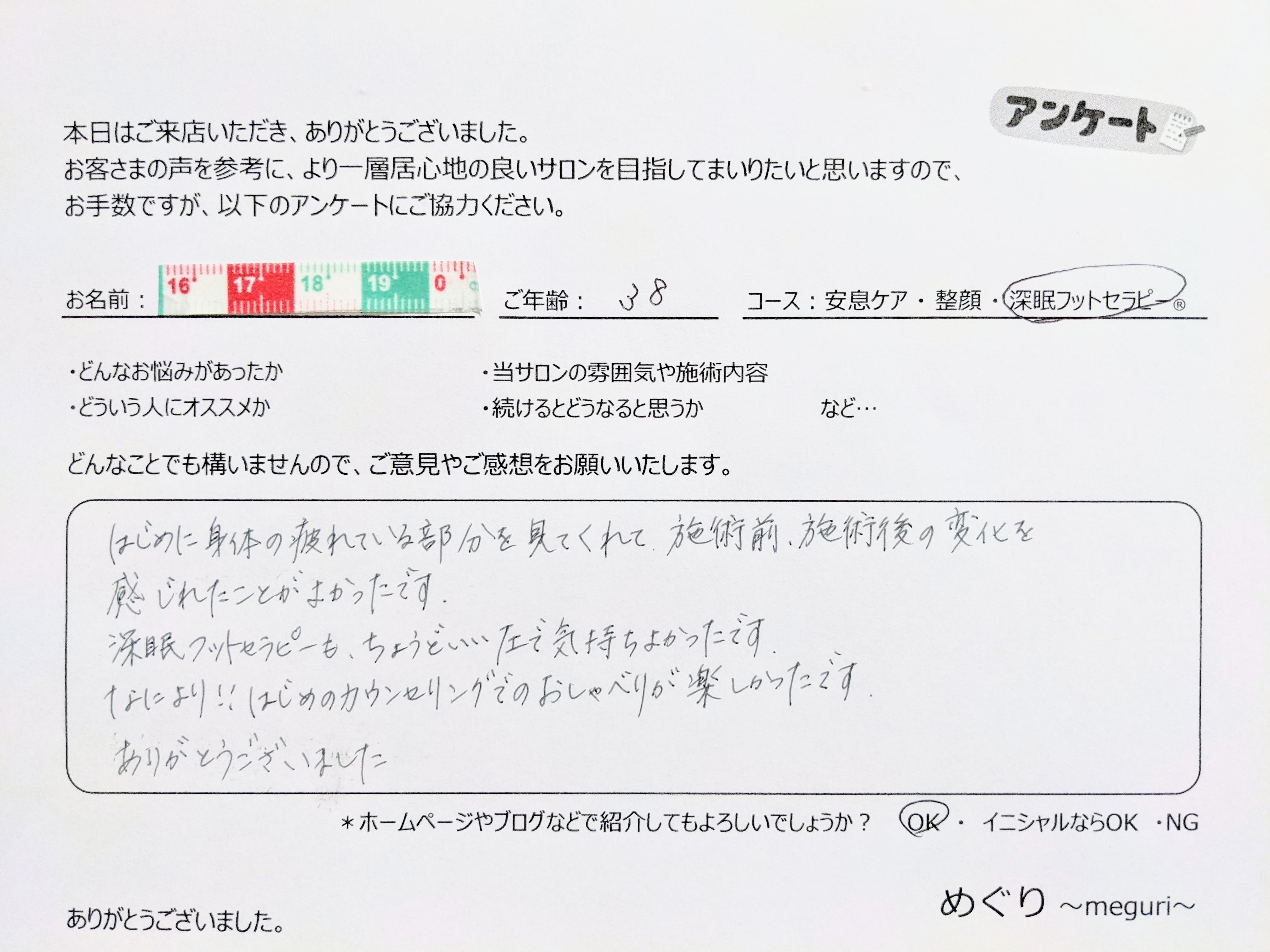 ●お客さまの声● ~深眠フットセラピー®コース~ |