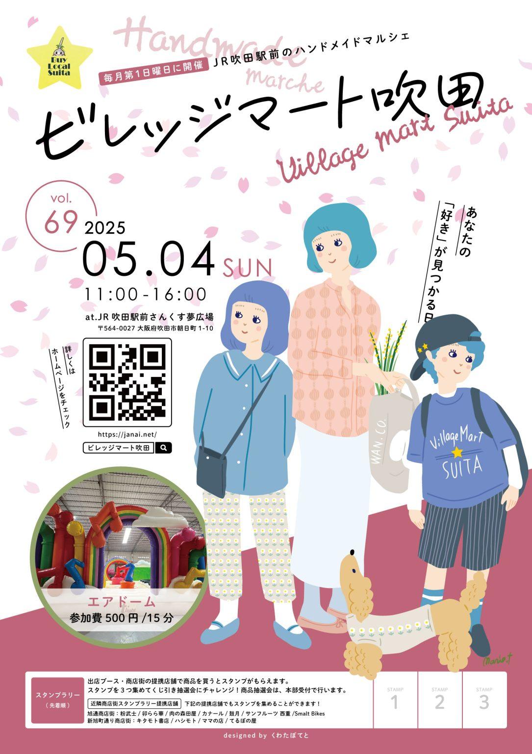 5月4日(日)、JR吹田駅前で開催される月に一度のハンドメイドマルシェ『ビレッジマート吹田vol.69』に、フットケアとハンドトリートメントで出店いたします♪